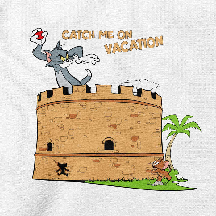 The "CATCH ME ON VACATION" collection reimagined Tom & Jerry in a lighthearted, summer-focused apparel line designed under official Warner Bros. licensing. The goal was to adapt these iconic characters for an adult audience, blending nostalgic appeal with contemporary fashion. Set in beach-inspired environments, the collection featured warm vintage tones and playful compositions that echoed the mischievous energy of the original show. Each graphic was placed to create a fresh yet familiar aesthetic, while the photo shoot drew on vintage filters to reference the era in which Tom & Jerry aired.